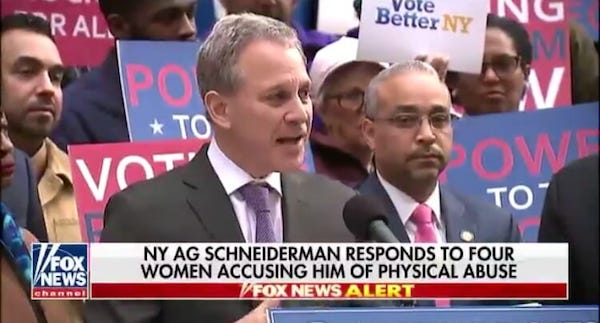 The New Yorker has published an article on Attorney General Eric Schneiderman, which reports multiple women making serious allegations of assault. No one is above the law including New York’s top legal officer. I will be asking an appropriate New York District Attorney(s) to commence an immediate investigation and proceed as the facts merits. My personal opinion is that, giving the damning pattern of facts and corroboration laid out in the article, I do not believe it is possible for Eric Schneiderman to continue to serve as Attorney General, and for the good of office he should resign.