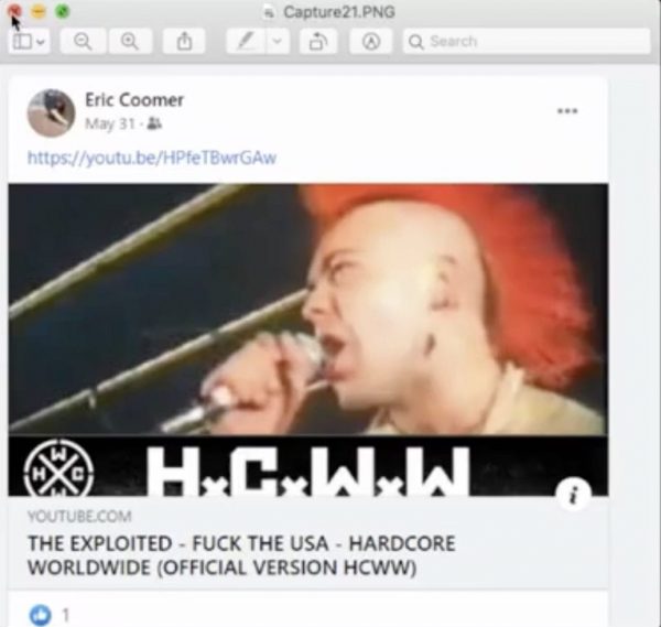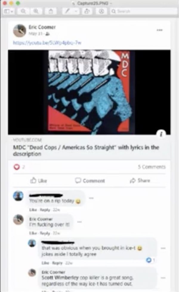 According to Oltmann, Eric Coomer isn’t a big fan of the police. During his interview with Malkin, he shared several screenshots of anti-police rhetoric like an image a link to YouTube from the hip-hop song “Dead Prez.”