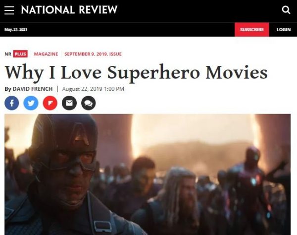 To self-identified evangelical and Never Trump conservative David French, Disney’s Marvel franchise, especially Avengers: Endgame, is not just entertainment, the films are one of the things French loves most about America.