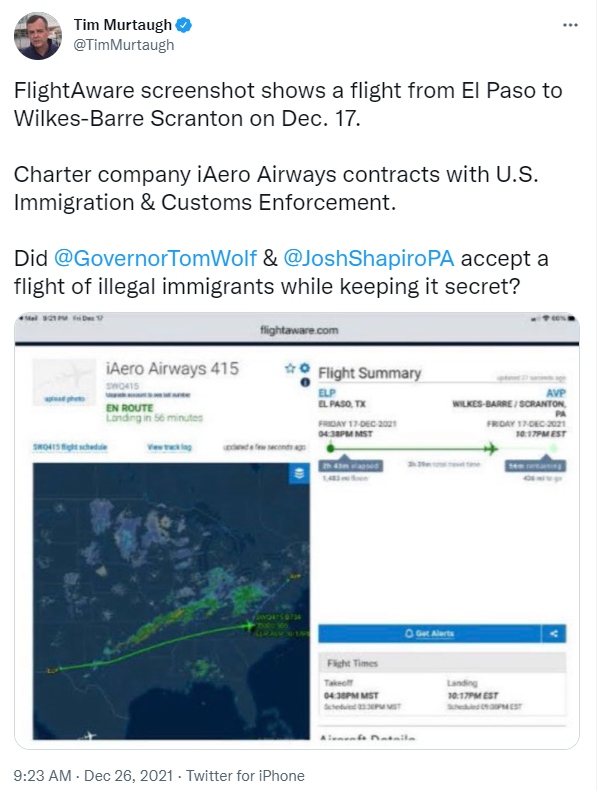 Congressman Dan Meuser as well as gubernatorial candidate Lou Barletta have urged immigration authorities as well as Governor Tom Wolf to explain what one source told The National Pulse were “ghost flights” into Scranton International Airport over the course of December.