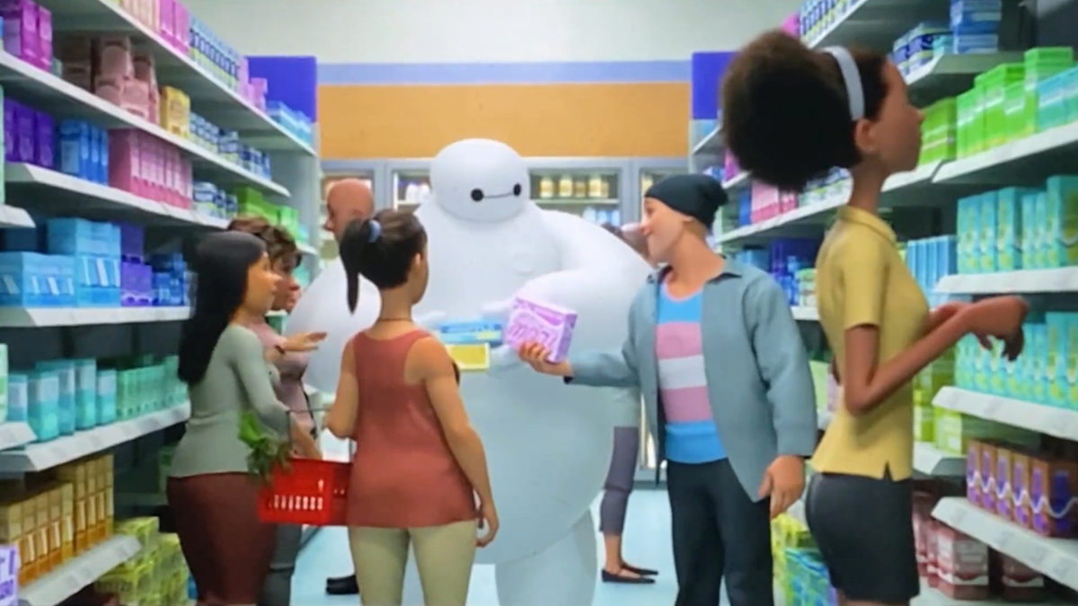 “In the clip, Baymax stood in the feminine hygiene aisle of a store and stared at the shelf in front of him. After a moment, he turned to the woman next to him and asked for her recommendation for a good product. She responded first with surprise, and then immediately did her best to assist him — and a crowd of others quickly joined in with their suggestions as well.”